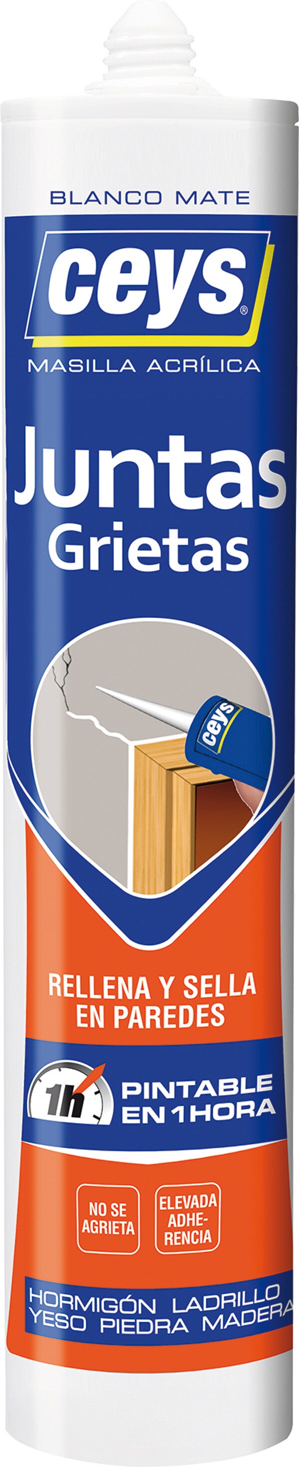 Cartucho de masilla acrilica Ceys juntas grietas gris o blanco 505601. sellador especial para juntas, fisuras y agujeros en paredes,pintable .EAN: 8411519225082
