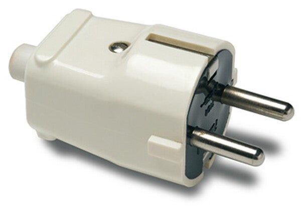 Clavija schuco en color blanco de 2 polos mas toma de tierra de 16 amperios marca FAMATEL muy facíl de montar y fabricado en materiales ignífufos. EAN: 8429760410034